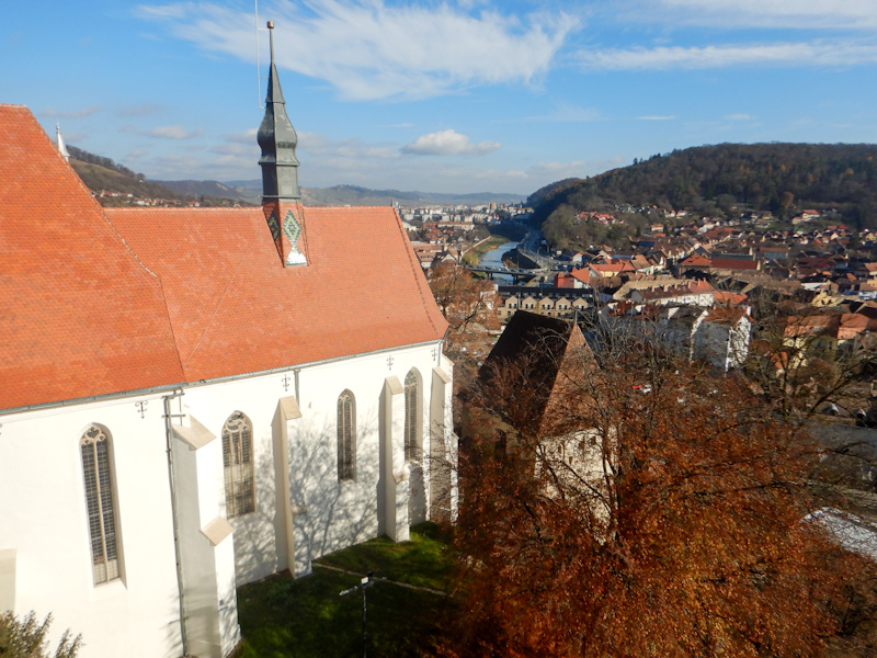 Having already oriented ourselves the previous day, after our breakfast including sheep cheese, olives and sausages, we were ready to see all the sights. The weather had become distinctly colder. We wandered round until the Lutheran Church opened for visitors. We climbed up the Bell Tower to enjoy a panoramic view of the old town.