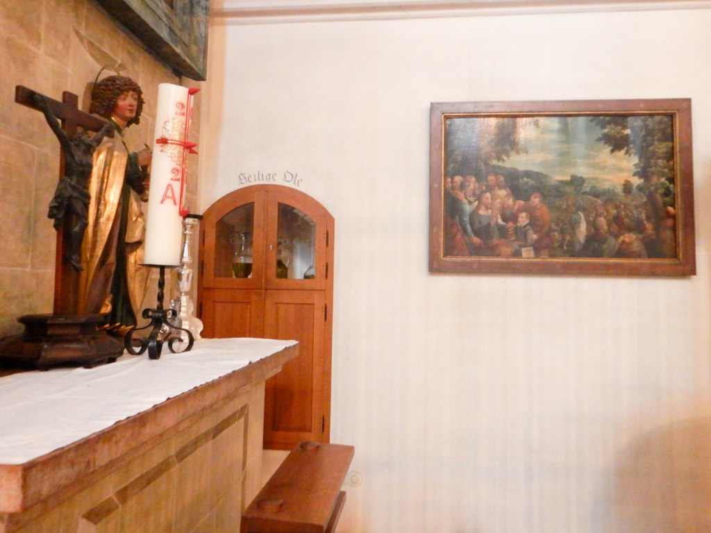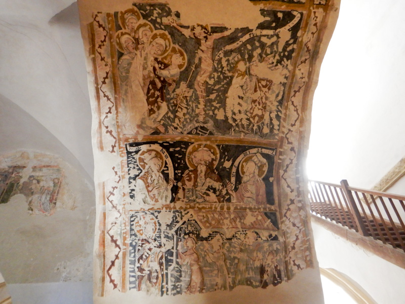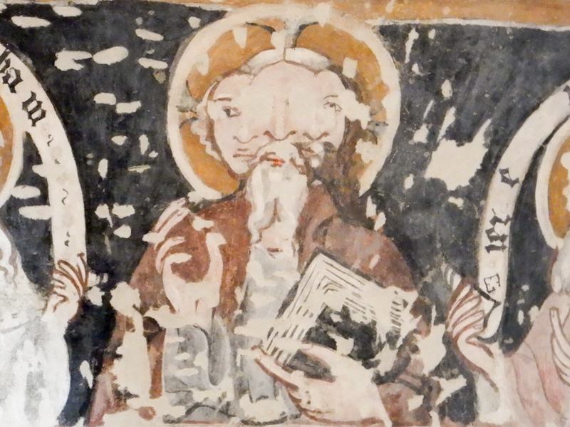 She even took us outside the church to see the small chapel within the walls where the small number of Catholics met after the reformation. This features a rare wall painting showing God the Father holding Jesus after the crucifixion. Other paintings depict the Gospel writers with their traditional heads and also paintings of all the apostles.