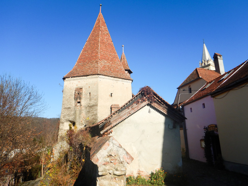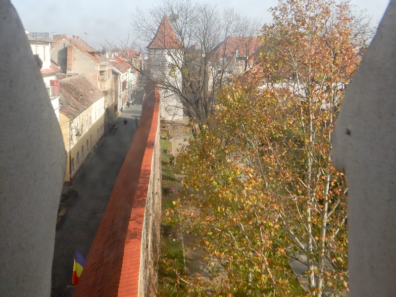 We walked to a section of the old city wall which has been restored to enable safe access to it and to the three towers within that part of the wall – the Archers’ Tower, the Potters’ Tower and the Carpenters’ Tower. The entrance fee was only 2 Leu and the man at the entrance gave us lots of information about Sibiu as well as explaining that he wanted to visit England to see the places associated with the legends of King Arthur.