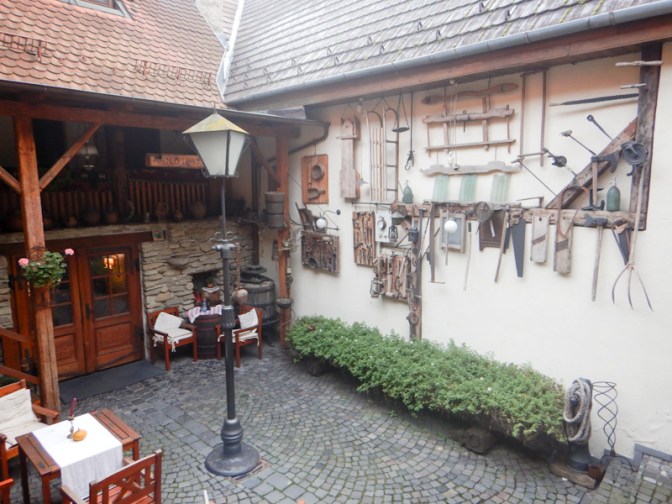 The hotel restaurant more than lived up to our expectations and we enjoyed traditional Slovakian cuisine of Živánska (3 types of meat, sausage, bacon, vegetables, potatoes) accompanied by Pinot noir. The wine was served meticulously by the waiter after a protracted display of preparation and aeration.