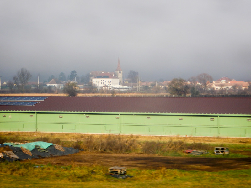 The train passed through lots of rural areas – both arable and livestock farming, much of which appeared to be on small plots of land surrounding the houses. There were also small villages and a few towns. Much of the landscape was very flat apart from one more mountainous area which appeared to be a National Park. We were checked at the border by the Romanian but not by the Hungarian border force. Once we had crossed into Hungary, the train speeded up.