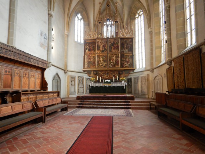 We also saw a wonderful collection of 14th and 15th century oriental rugs donated by the local tradesmen – the medieval town was dominated by the craft guilds. The church houses the oldest font in Romania.