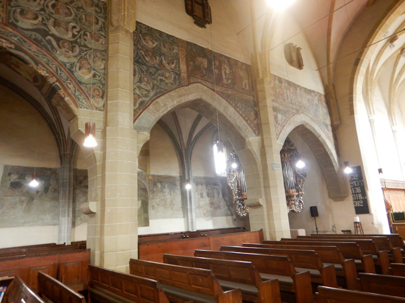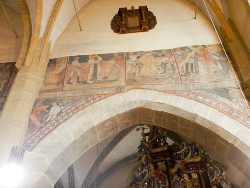 Like the church at Sighișoara, it was originally Catholic but became Lutheran at the reformation when the wall paintings were covered. Many of these paintings were uncovered and restored in the 1970s.