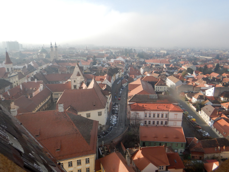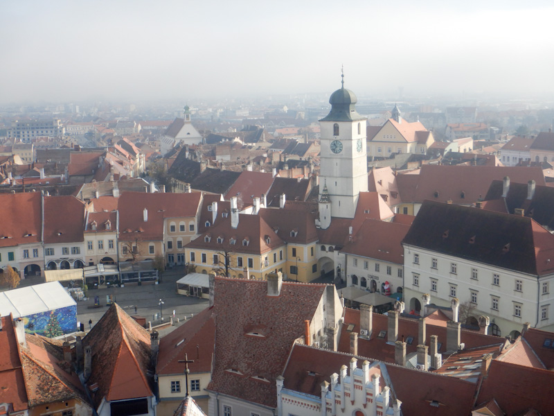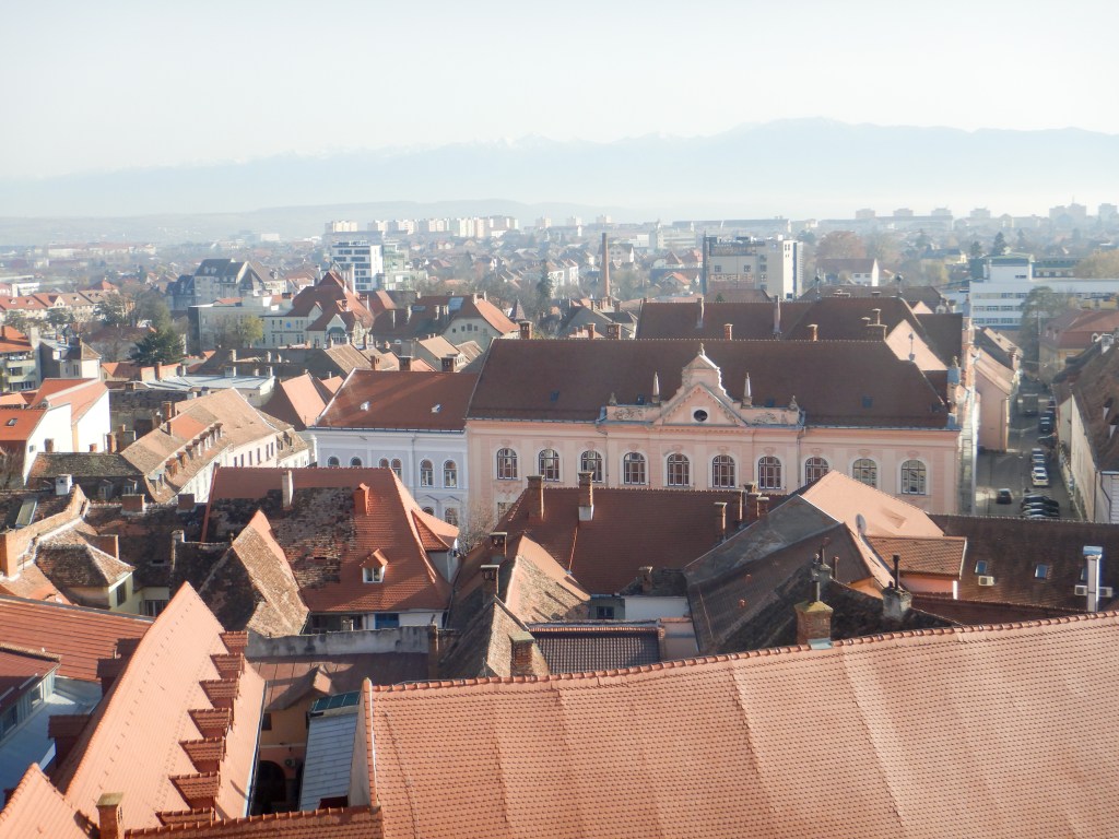 On the top floor of the tower the observation deck allowed views of the Old Town and even the snow covered Fagaras mountains beyond.