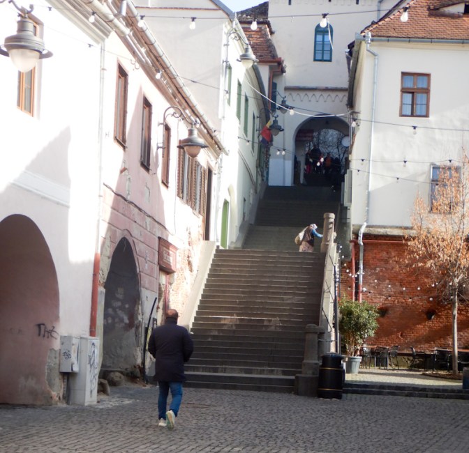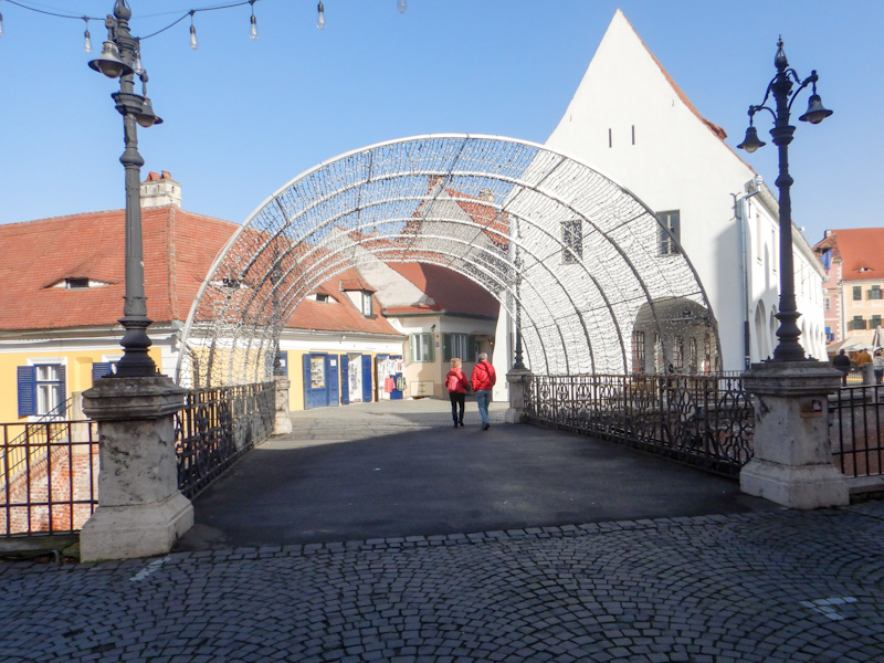 We wandered back towards the Upper Town, seeing some women in traditional Romanian clothing. We crossed the Bridge of Lies with a wonderful view towards the Lower Town. Legend says that telling lies on the bridge will make it crumble to the ground.