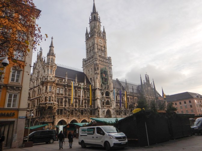Next morning was also very cold. After breakfast, we set out on the short walk past the botanic gardens to explore the historic city centre. We took some photos as we passed the Frauenkirche, Marienplatz and Old St Peter’s as it was quite quiet but we would be returning to these places later once they opened for the day. The impressive looking Christmas Market was still being set up – doesn’t open until 24 November so we were almost a week too early.