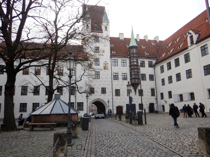 We were up early and took a packed breakfast from the hotel to the station for our second consecutive day with a long travel time, but this was using our pass (seventh pass day). We had time to visit the Business Class Lounge for coffee and croissants. The train was the luxurious high speed rail jet so it was quite a contrast compared to our recent journeys on Romanian trains. However, the journey did nothing to restore our faith in the timing of German trains – by Vienna we were fifteen minutes late and suddenly we saw we had become an hour late as we had to divert via Regensburg because the line we were meant to follow (already a diversion for scheduled track-work) was too busy. Unfortunately this meant that it was already dark when we reached Munich so there was no time for sightseeing that afternoon. it was even more cold. However we had a lovely room in a hotel very close to the station and there was free coffee and apples twenty four hours per day. We even found a pleasant traditional German restaurant only a stones throw from the hotel.