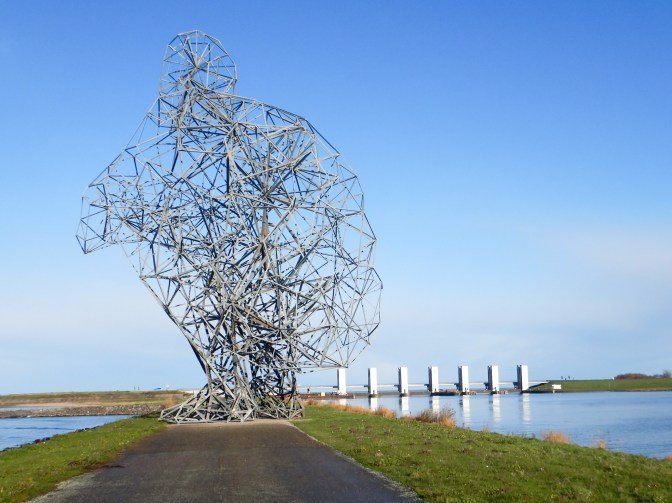 Across the water, we could see the Antony Gormley sculpture “Exposure” an eighty five foot high steel framed sculpture of a squatting man.