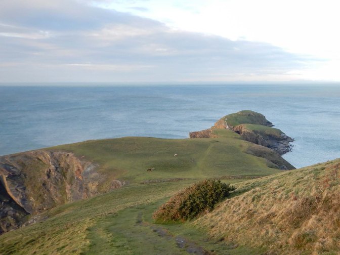 We parked the car easily in a free car park just outside the village of Llangrannog. My husband opted for a short stroll to the village while I followed a track towards Pendinas Lochtyn, a superb example of an Iron Age hill fort. I diverted round the base of the fort, making for the headland overlooking iconic Ynys Lochtyn (an island). The peninsula was deserted apart from several ponies grazing on the springy turf.