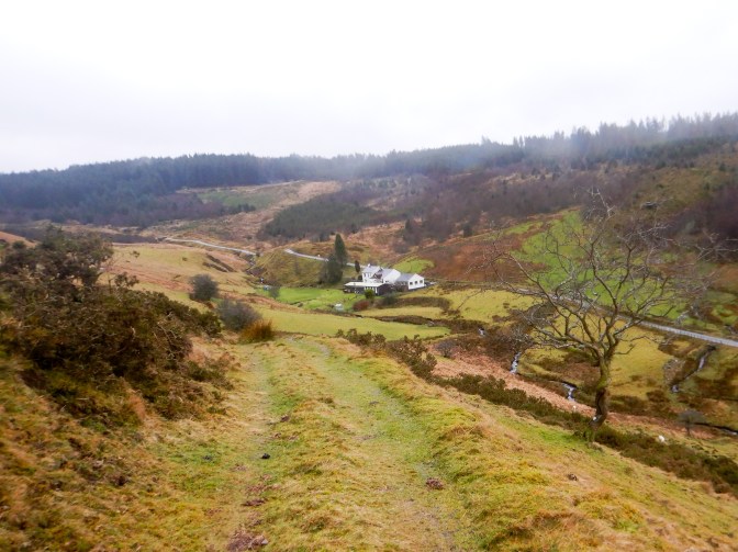 I was relieved to see that I didn’t need to cross the stream through a ford as the footpath stayed on the same side. I continued to follow the stream then realised that I hadn’t seen a footpath sign for a while. Checking the map, I noted that I should be about 100m away from the stream so I climbed up the side of the valley to reach a footpath which subsequently became a track.