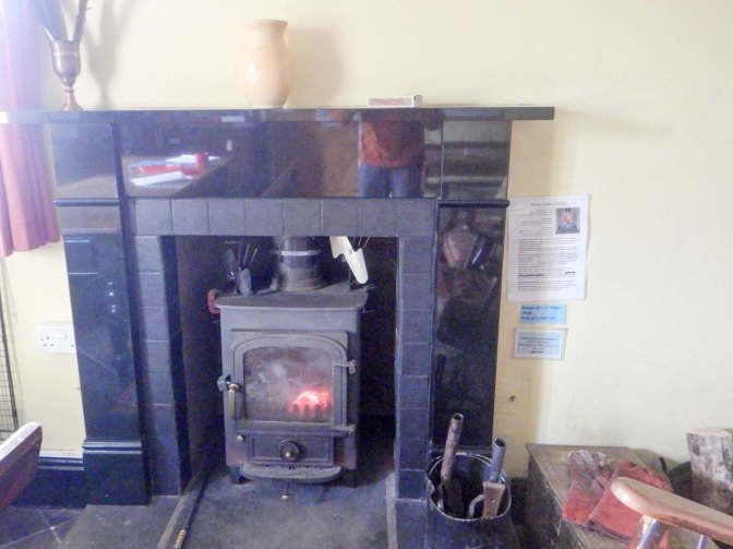 I returned on foot to the hostel, which had suddenly become very busy as the expected three guests had arrived before 4pm on motor bikes, closely followed by next week’s warden on foot. I didn’t need to worry as they had the code to enter the building, didn’t necessarily expect me until 5pm and they had made themselves at home with a well established log fire burning. They had even noticed that my car had a flat tyre and subsequently changed the wheel for me. The advantage of having an elderly car is that I have a proper spare wheel albeit steel rather than alloy.
