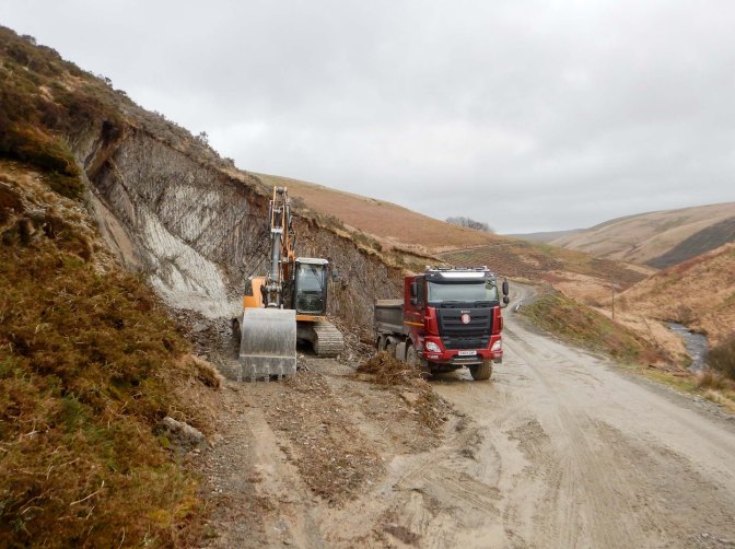 Much forestry work is ongoing at the moment with new planting as carbon offset projects. This work with vehicles passing has made the “road” to the hostel much more muddy. However, the silver lining is that many of the potholes have been filled in following damage by the forestry vehicles so actually it was less of an ordeal for me to reach the hostel in my Peugeot 107 than it had been last summer. Driving along the road took some planning to try to avoid times when the lorry was transporting and depositing stones and the digging machine was working on moving the stones into position.