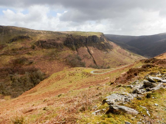The track descends, taking a zig zag course to ease the slope and affords views of the scenic Doethie Valley to the east.