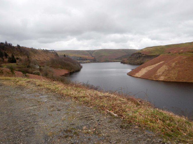 My third walk started across territory already walked by me down the Doethie Valley, before turning uphill to “new” areas of easy walking on forest tracks with views of Llyn Brianne Reservoir. The reservoir was constructed in the 1970s to provide water to Swansea. As there were no guests the previous night, I was permitted to leave at 09.00am – the hostel manager was concerned that otherwise I might not finish by 5pm when I was due back at the hostel ready for the arrival of booked guests. Actually the route was easy to navigate and I was able to maintain a relatively fast speed.
