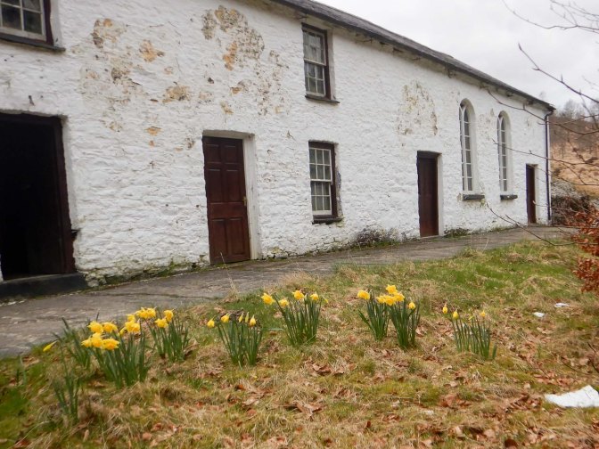 Daffodils in bloom outside the remote Soar y Mynydd Chapel