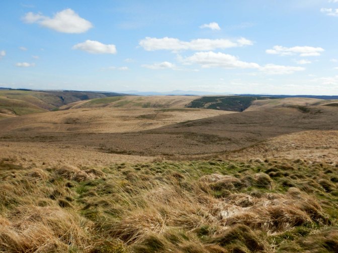 Navigation proved to be surprisingly difficult to the trig point as I tried to avoid the worse of the tussocks. However, I was at Esgair Hir, from where there were great views of remote moorland, in time to eat a late lunch.